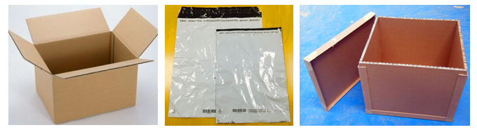 (瓦楞纸箱)                       (包装胶袋)                            (蜂窝纸箱)