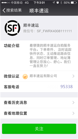 关注顺丰微信,